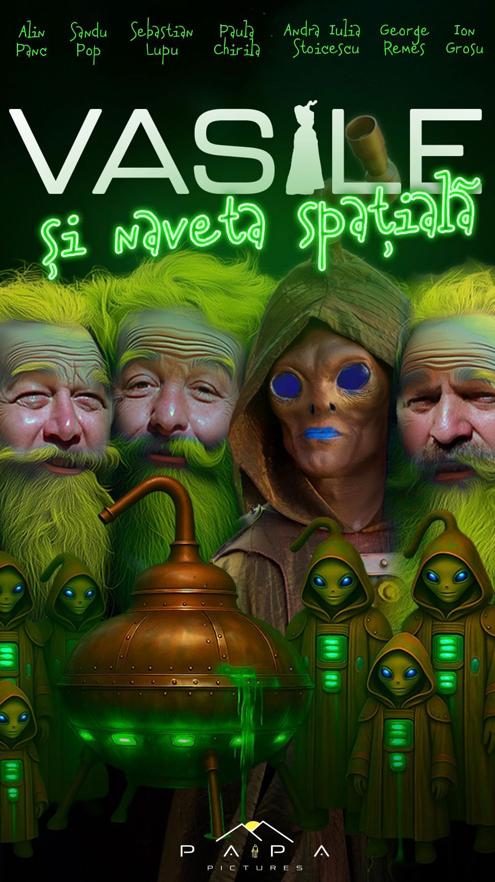 Pe 15 decembrie râdem împreună cu actorii filmului Vasile și Naveta Spațială la avanpremiera de gală! Și fii atent:până pe 8 noiembrie, biletul este redus de la 39 la 20 de lei! Ofertă de Black Friday. Un extraterestru sosit pe Pământ cu misiunea de a-l distruge pentru a-și salva propria planetă se împrietenește cu trei ardeleni dintr-un sat unde toți bărbații se numesc Vasile. Când aceștia transformă resturile navei lui într-un cazan de țuică, planurile lor intră în conflict, iar prietenia lor…