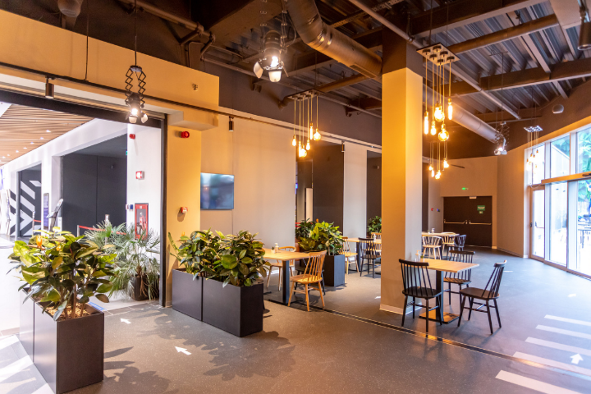 Restaurantul se află la etajul 2, în Veranda Mall, integrat în spațiul cinematografului.